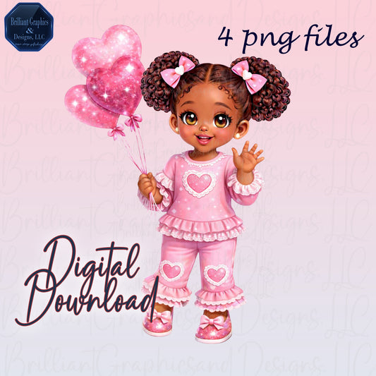 Adorable Pink Girl Clipart Bundle | Cute Black Girl PNG Set | Valentine | Birthday