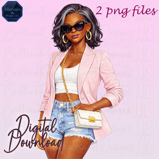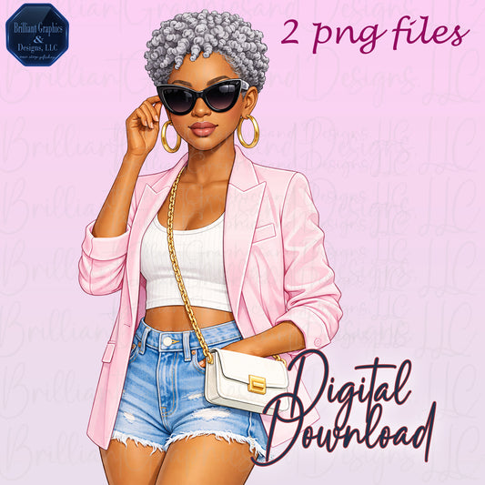 African American Clipart Set. Stylish Mature Woman. 2 PNG Files. Digital Download.