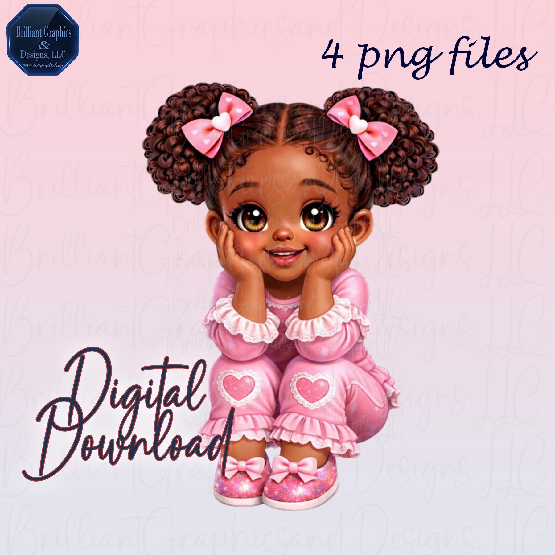 Adorable Pink Girl Clipart Bundle | Cute Black Girl PNG Set | Valentine | Birthday