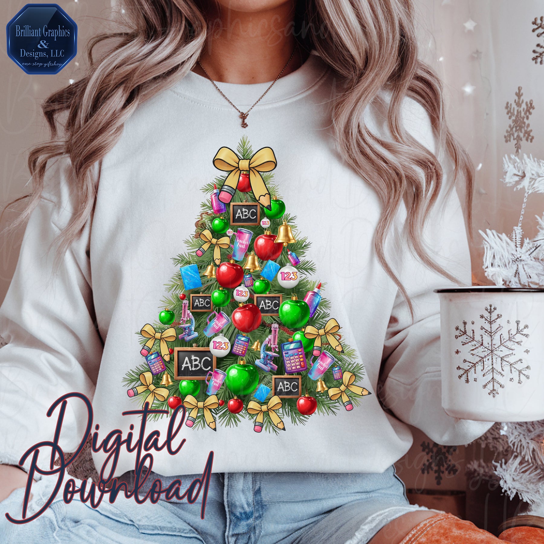 ✨ Teacher-Themed Christmas Tree PNG | Cute Classroom Christmas Clipart | Holiday Teacher Sublimation Design | Digital Download ✨